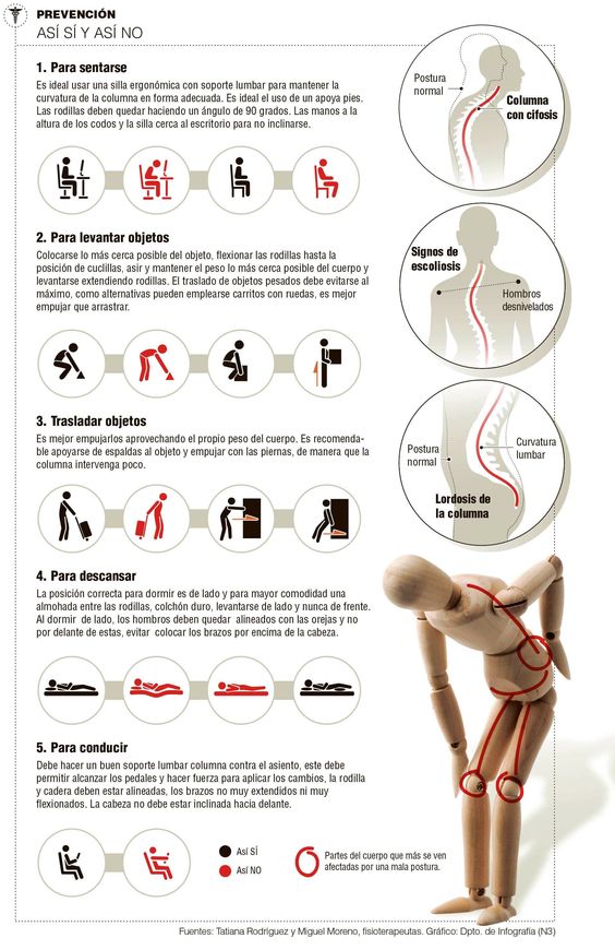 3º. De cada momento, fotografiaros expresando una postura inadecuada y una postura adecuada (Ejemplo: 1. cómo dormir correctamente; cómo no dormir correctamente). Una vez analizadas las posturas corporales, nos vamos a centrar en el aparato locomotor. Debéis en cada fotografía de postura inadecuada señalar la zona afectada (con un círculo, segmento, etc.), recoger qué huesos y músculos están implicados en la misma.